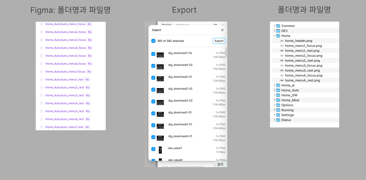 획이 사라지거나 의도와 다른 굵기로 표현되는 것을 확인할 수 있습니다. 이러한 점을 고려하여 UI/UX 설계 및 GUI 개발 효율성을 높이기 위해 Figma를 사용하여 개발한 후, 최종적으로 GUI Assets 파일 포맷을 변경하는 방식으로 결정했습니다.