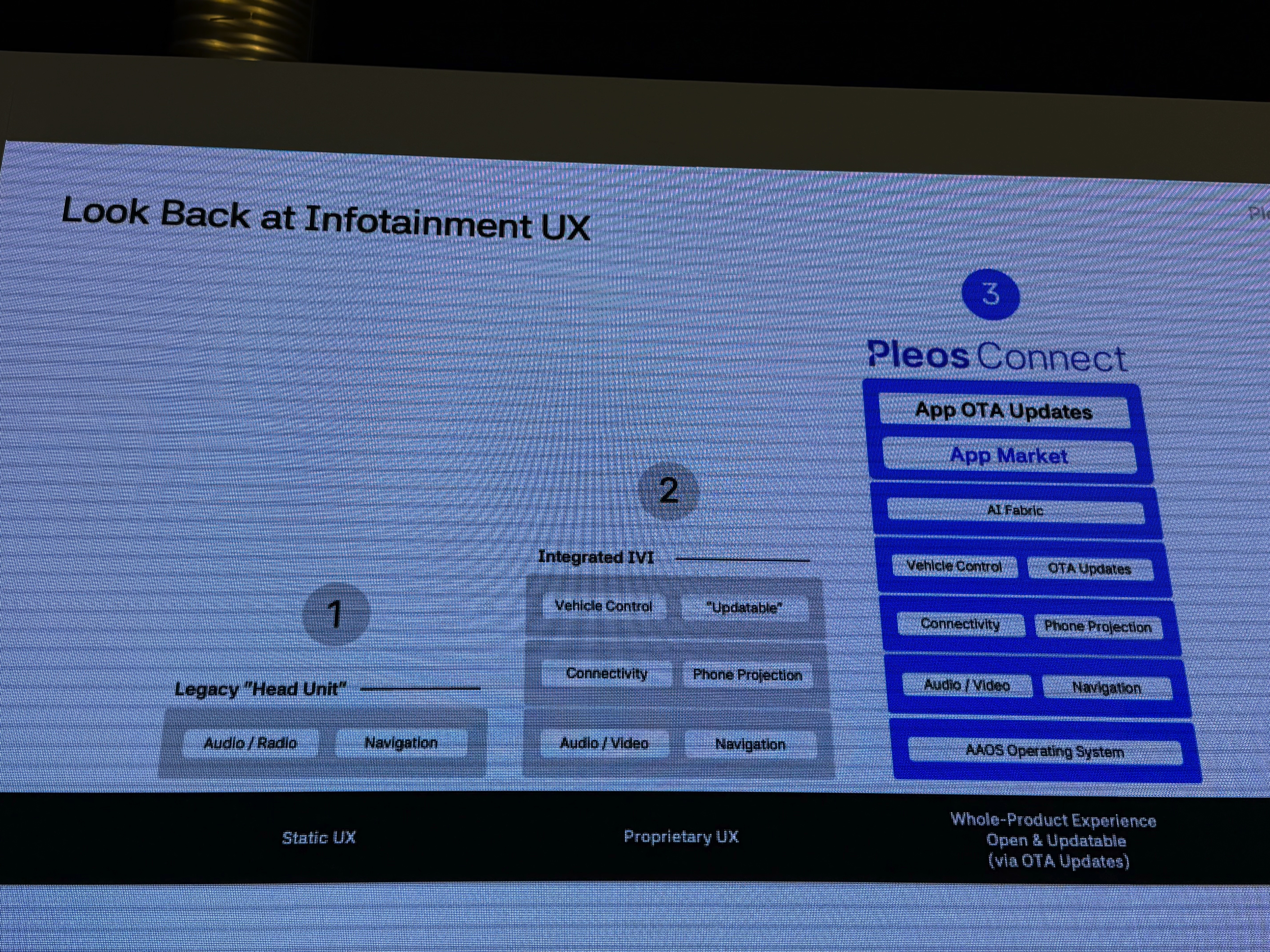 쉽게 말해 매우 단순한 동작을 하는 독립형 장치의 IC칩에 SW가 임베디드되어 변경할 수 없고, 차량에 흩어진 장치들을 다시 통신하기 위해 매우 복잡한 형태였다. 이제 S/W와 H/W를 분리한 것이다.