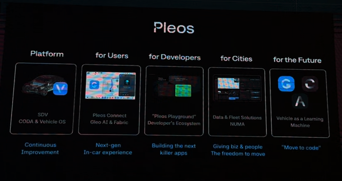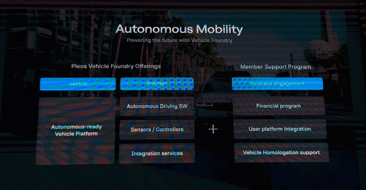 Pleos는 2026년 상반기부터 차량에 탑재 예정이며, Pleos에는 AI가 탑재되어 사용자의 맥락에 맞는 대답과 제안을 한다. 2027년에는 룰베이스가 아닌 레벨 2+의 자율주행을 목표로 하고 있다.