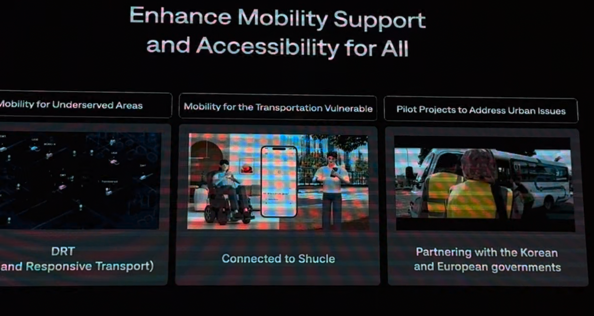 현대차는 완성차 기술 노하우를 웨이모 우버와는 전략적 파너트너로 주행 데이터를 함께한다. 네이버, 쏘카는 자사 서비스를 플레오스에 최적화한 것을 시연했다.
